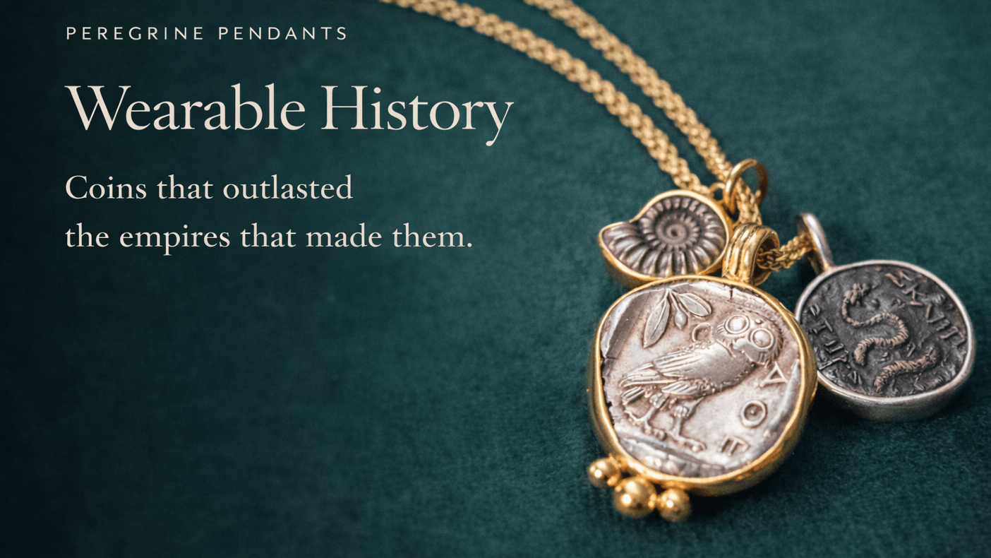 Whether it’s a silver Athenian owl or a Roman emperor's portrait, we work tirelessly to preserve the unique characteristics of each piece. Our settings are designed to enhance, not overshadow, the history captured in each coin. Each pendant is hand-crafted in either 18k gold or sterling silver, ensuring the perfect balance of luxury and historical significance.